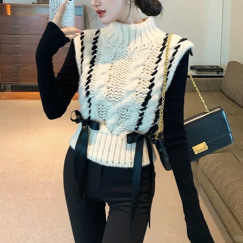 レースアップケーブルニットベスト 00924