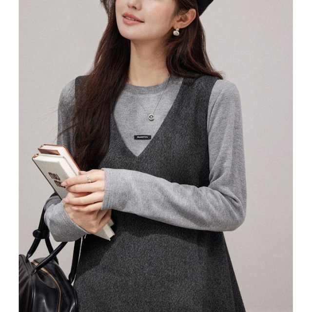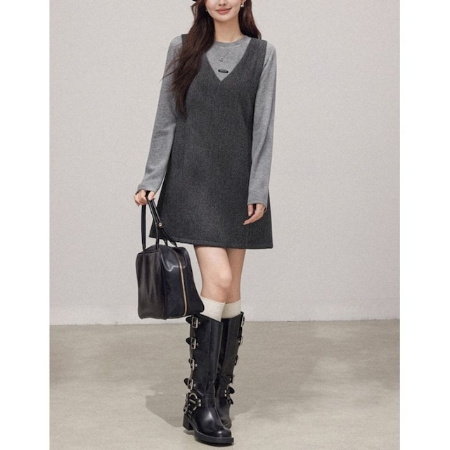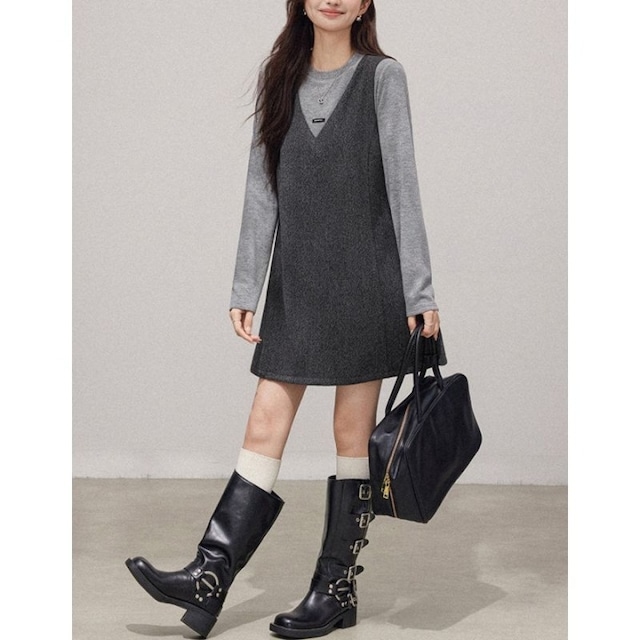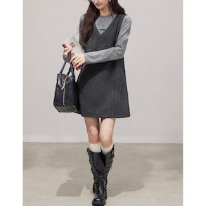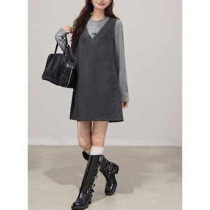 グレーシンプルジャンパーワンピース 00927