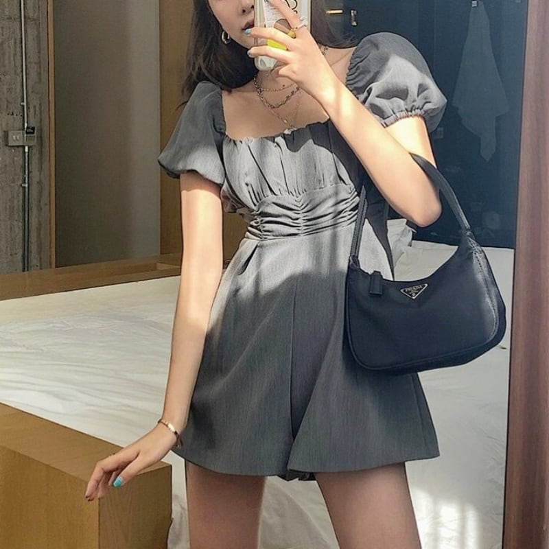 【2way】ハイウエストプリーツショートジャンプスーツ 2color 00976