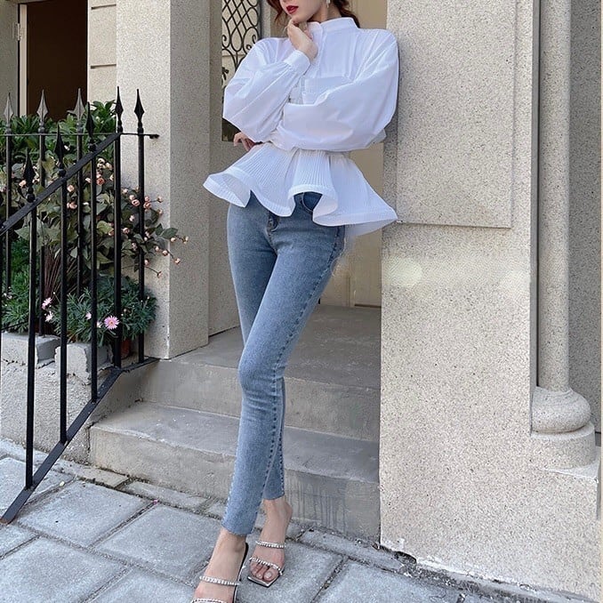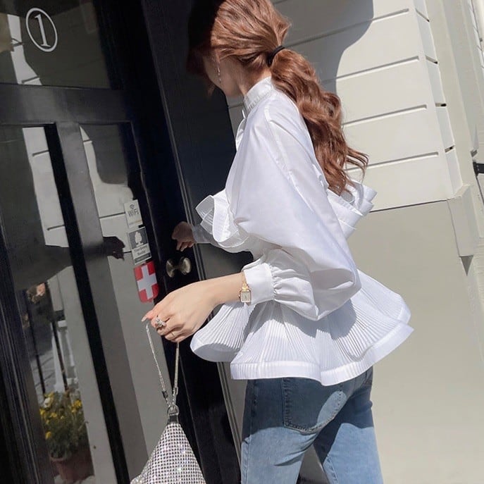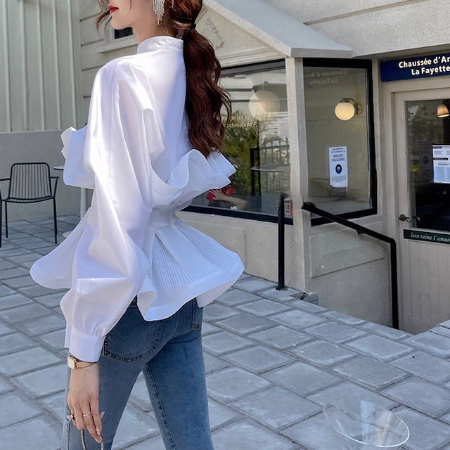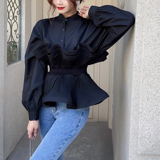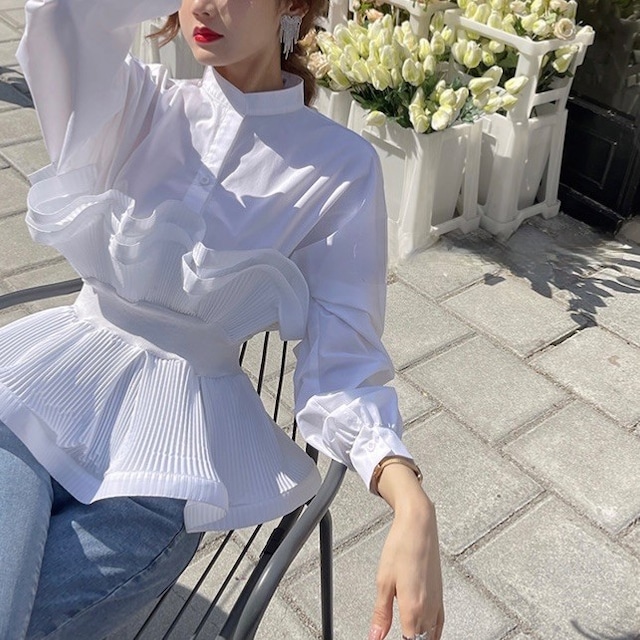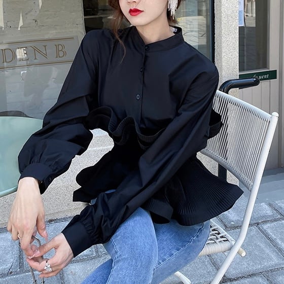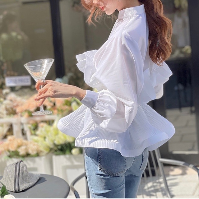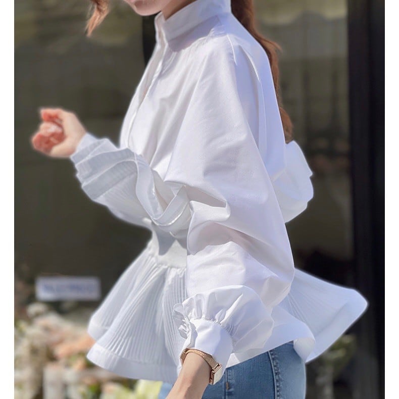 ペプラムプリーツブラウス 2color T087