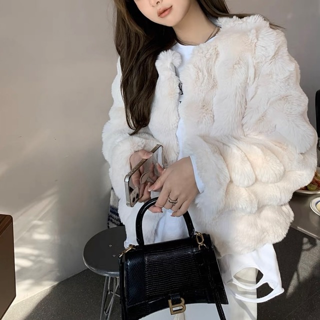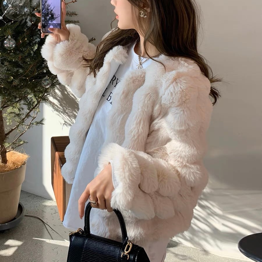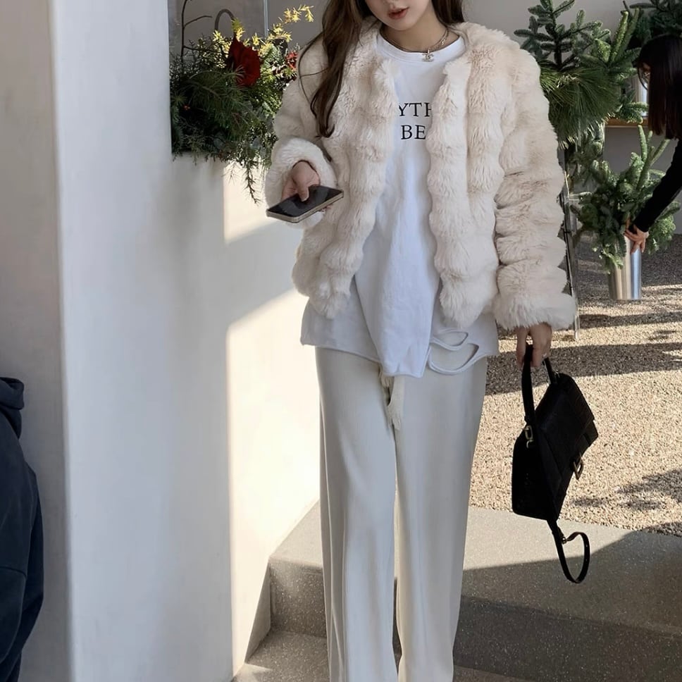 フェイクファーウエーブコート 2color A108