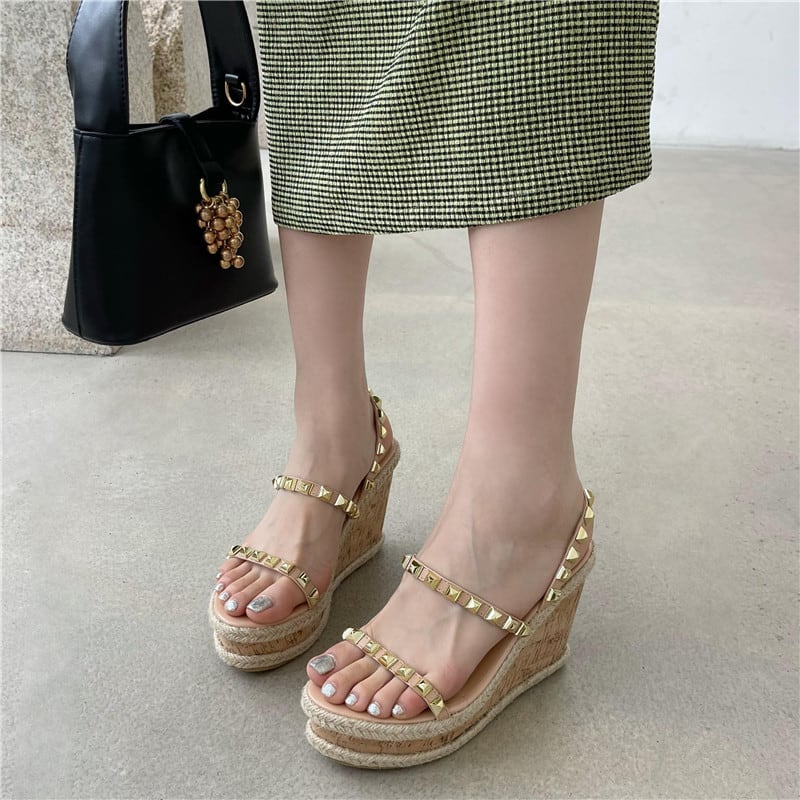【商品詳細】 注目のウェッジスタッズサンダル!! カジュアルなスタイリングに履くだけでキレイめな印象に仕上がります。 旅行やリゾートスタイルにもおすすめです!! 【サイズ】 34インチ:約22cm 35インチ:約22.5cm 36インチ:約23cm 37インチ:約23.5cm 38インチ:約24cm 39インチ:約24.5cm 【カラー】 ベージュ / ブラック ♡ Please follow us ♡ https://www.instagram.com/vitoir_official ✔️ Vitoirで人気 おすすめItmeはこちら https://shop.vitoir.net/categories/4457355 ✔️ Shop top pageはこちら https://shop.vitoir.net/ < 注意事項 > *Vitoirはお客様からのご注文を受け、「1点1点お客様の商品を製作・取り寄せ」させていただいております。 *そのため発送までに「2-4週間ほど」お時間をいただきます。余裕をもってのお買い求めをお願い致します。 *全国どちらにお住まいでも、一律送料600円となります。(10,000円以上お買い上げで送料無料!) *ご覧いただいているPCやスマートフォンの画面により実物と多少色合いが異なる場合がございます。 *海外製品のため日本とは製造基準が異なります。ご理解のうえご購入ください。 *イメージ違いやサイズ違い等、その他お客様都合によりますキャンセル・返品交換はご遠慮ください。 ※商品を購入する前にこちらの【ご購入前にお読みください】をご了承の上お買い求めください。 https://shop.vitoir.net/about < お支払い方法 > *クレジットカード決済 (手数料無料・オススメ!) *キャリア決済 docomo/au/Softbank/Y!mobile (手数料300円) *後払い決済 (手数料300円) *コンビニ決済 (手数料300円)※購入手続き後送付されたメールにて必要情報の確認いただき先払い *銀行振込決済 (各金融機関規定の振込手数料)※購入手続き後送付されたメールにて必要情報の確認いただき先払い -----*-----*-----*-----*-----*-----*-----*-----*-----*-----*-----*-----