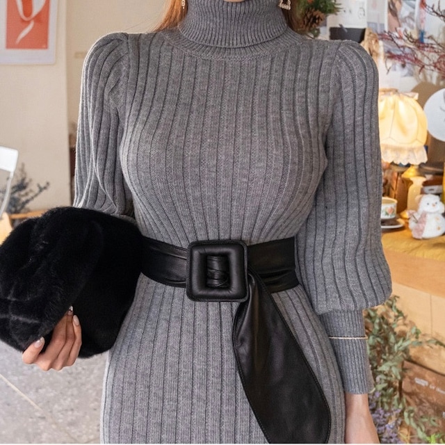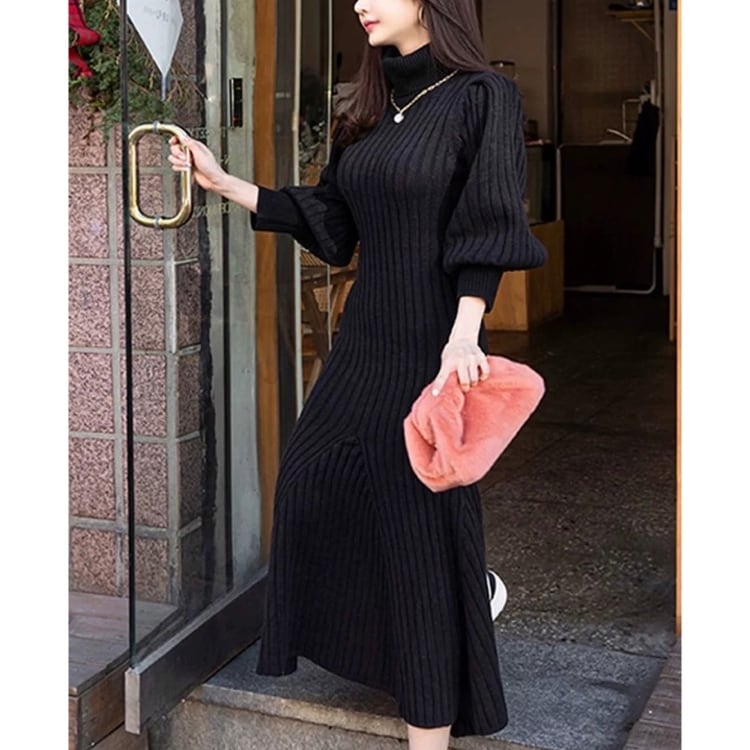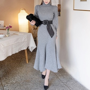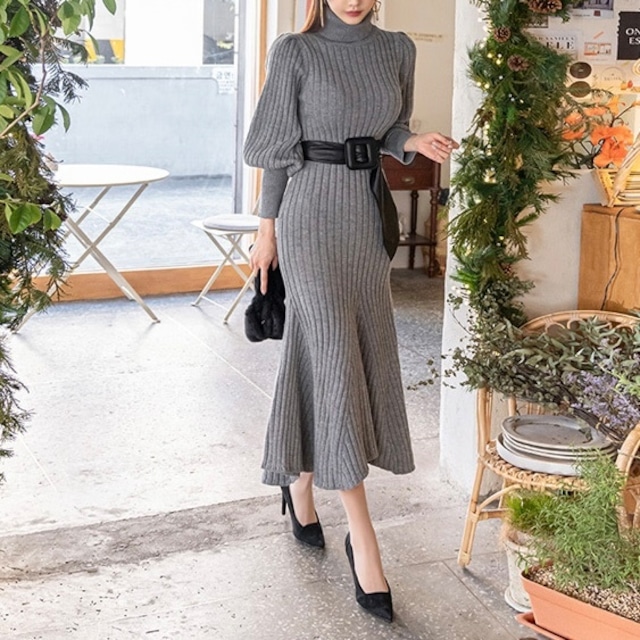ベルト付ボリュームスリーブワンピース 2color 00480
