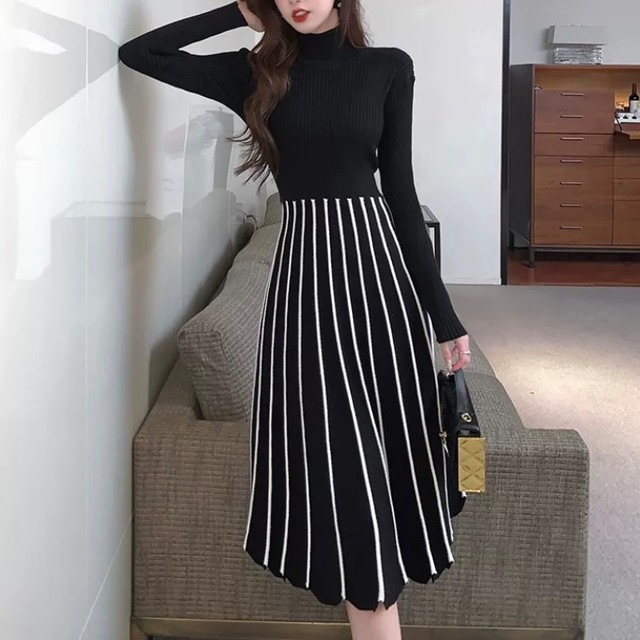 ストライプロングニットワンピース 00493
