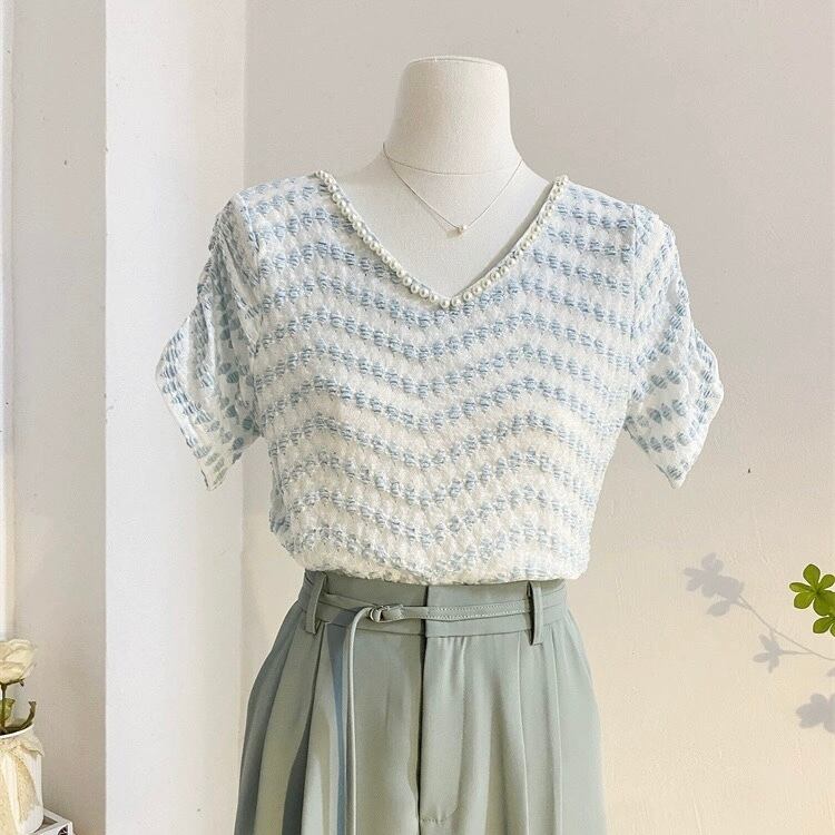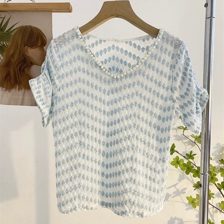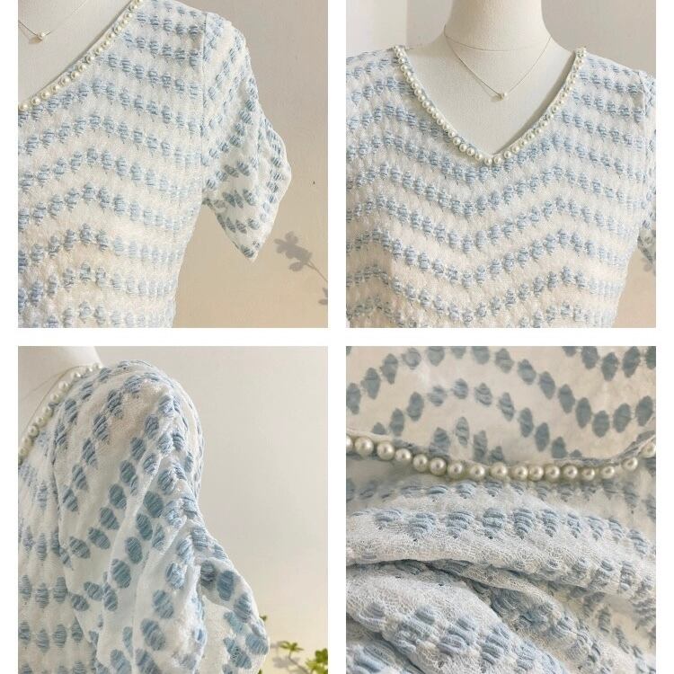 パールネックブルーサマーニット 00602