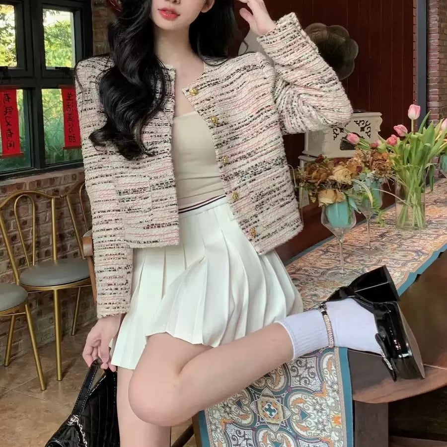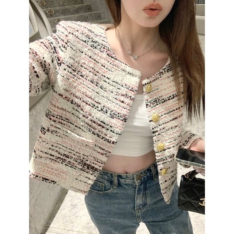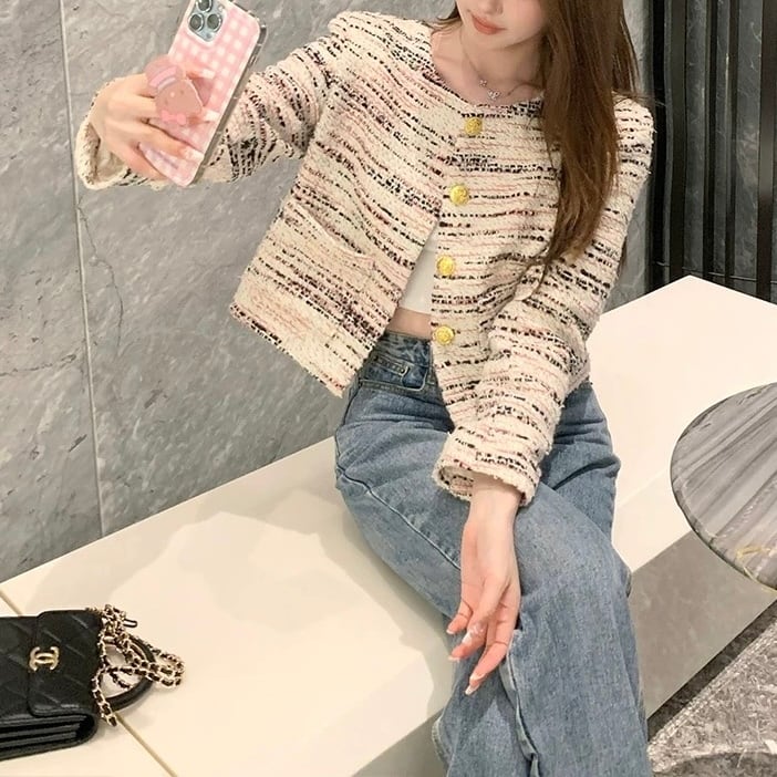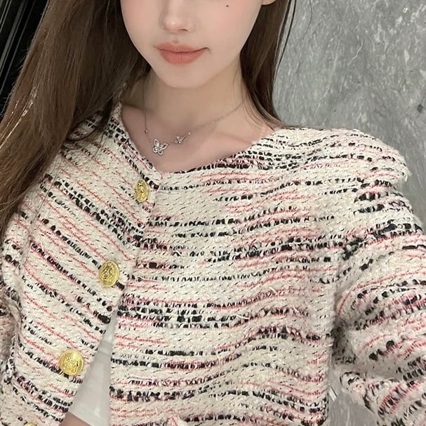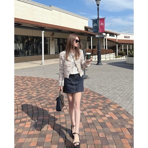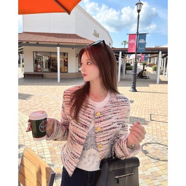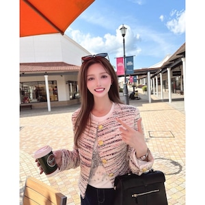【yui rikihisa様着用】ツイードゴールドボタンノーカラージャケット 00518