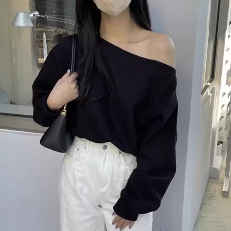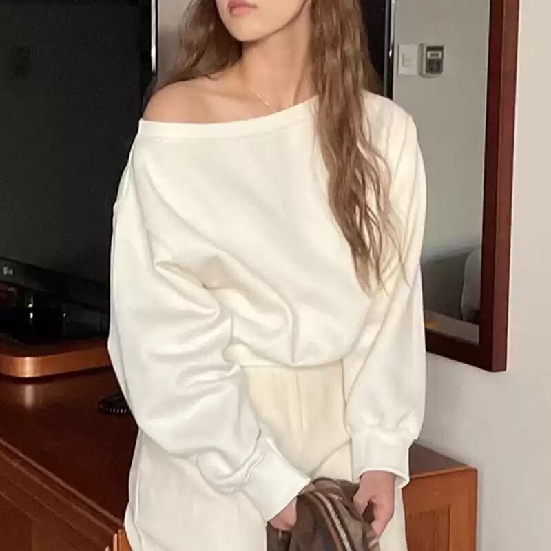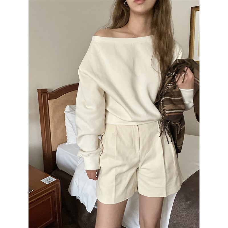 肩が少し見える絶妙なボートネックデザインで、カジュアルなのに女性らしい雰囲気を演出できます。